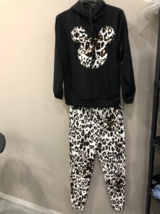 Completo tuta pantalone maculato con felpa stampa topolino