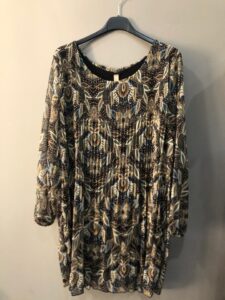 Vestito girocollo effetto plissettato fantasia fondo nero
